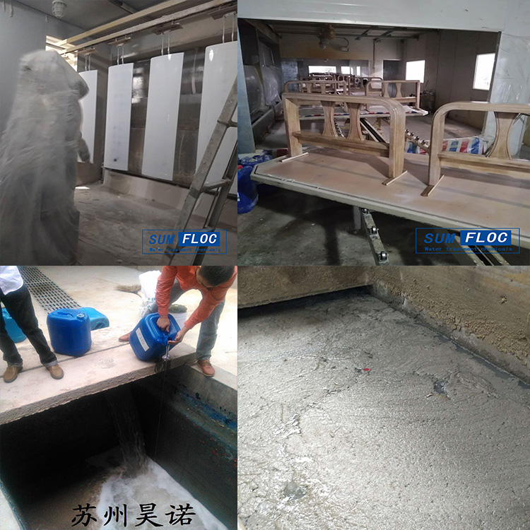 涂裝車間水簾柜里的循環(huán)油漆廢水怎么處理?近期有噴涂行業(yè)噴漆房操作人員咨詢水簾噴漆房廢水如何處理?處理噴漆房水簾循環(huán)水藥劑也就是我們說(shuō)漆霧凝聚劑,當(dāng)落噴漆進(jìn)入水簾式噴漆房與水幕相遇,會(huì)被沖刷到水池內(nèi)。而在漆霧凝聚劑的作用下可以使得漆渣慢慢地凝聚起來(lái),懸浮于水面上,易于打撈和清除。